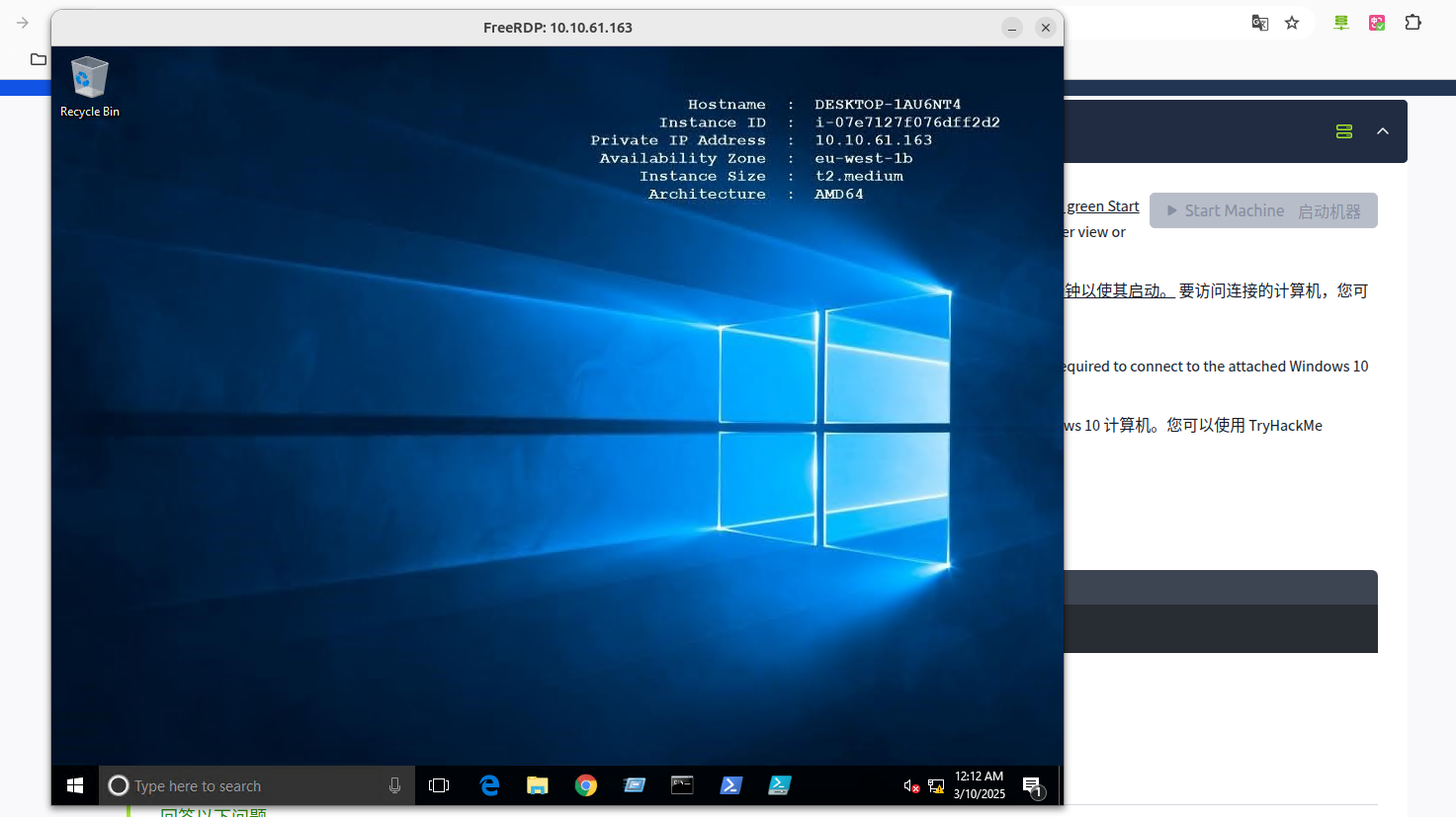 1 | xfreerdp /v:10.10.61.163 /u:thm /p:TryHackM3 +clipboard |