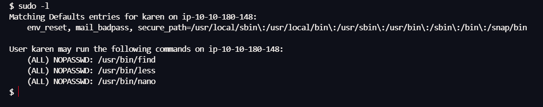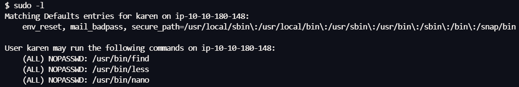 看允许用户使用 root 权限运行哪些命令(鸡肋,要密码)