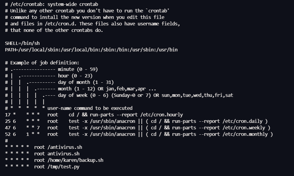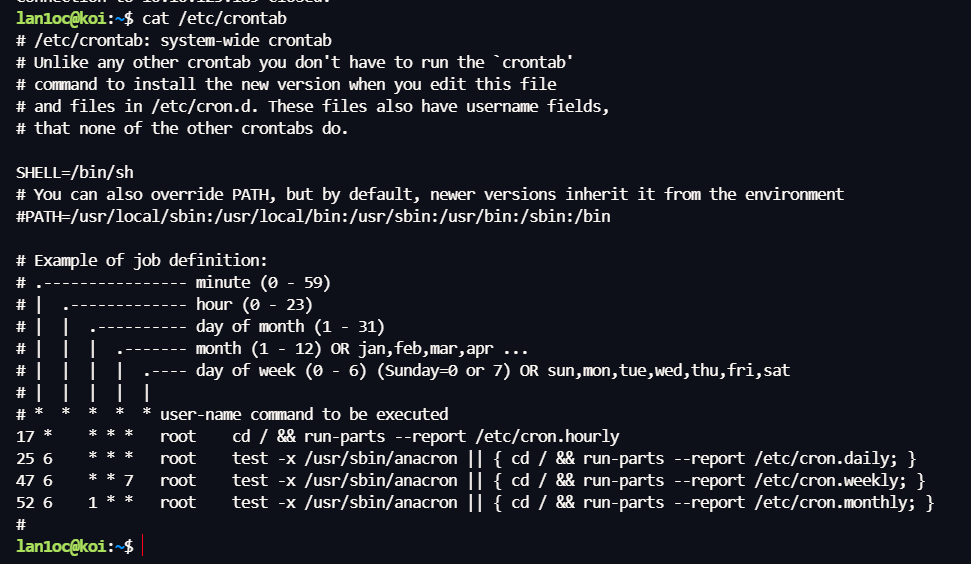 如果未定义脚本的完整路径,cron 将引用 /etc/crontab 文件中 PATH 变量下列出的路径