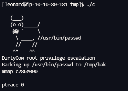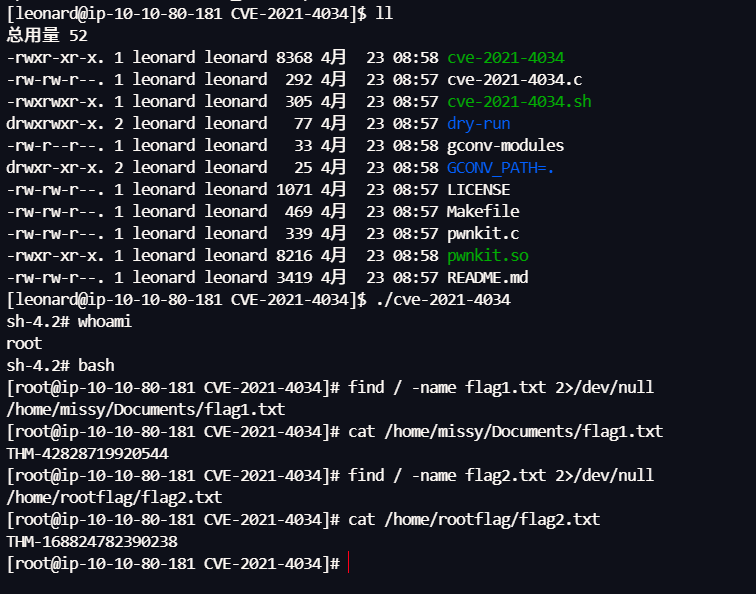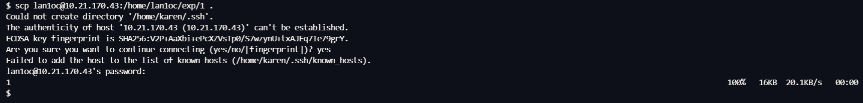 切换到目标机提权,运行1就行,但是肥肠尴尬,我的GLIBC版本太高了,重新制作个吧
