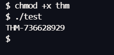 看了提示才知道,这题纯是脑洞题啊,有个可执行文件test,它会执行thm文件,那就创建一个并写入命令