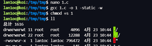 然后发现忽略了一个问题,程序所有者不是root,切换用户,重来一次就成功提权了