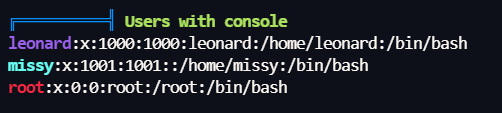1 | base64 /etc/passwd|base64 --decode|grep missy |
