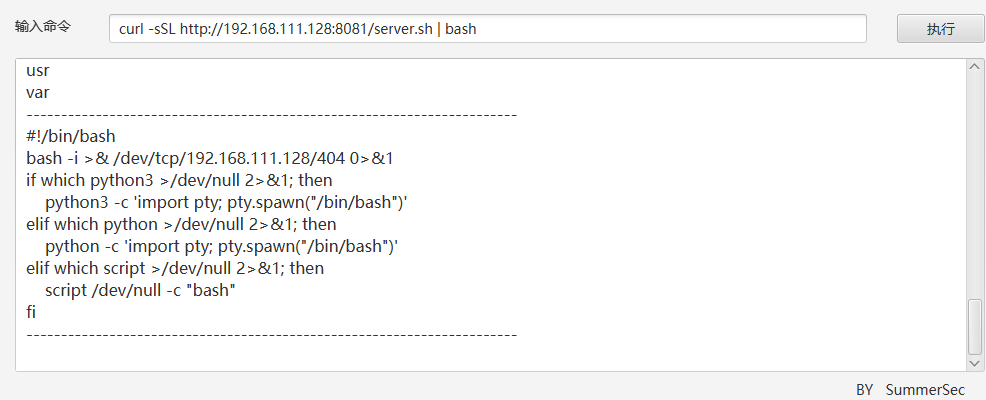 1 | curl -sSL http://192.168.111.131:8081/server.sh | bash |