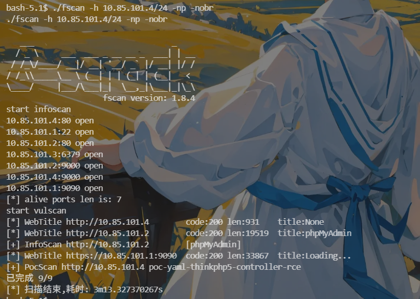 传了个fscan上去,然后反弹shell,虚拟终端太难操作了