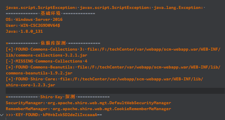 到这里我就开始想看看shiro失败到底啥原因了,java版本问题还是依赖问题啥的,然后就执行个探测的脚本
